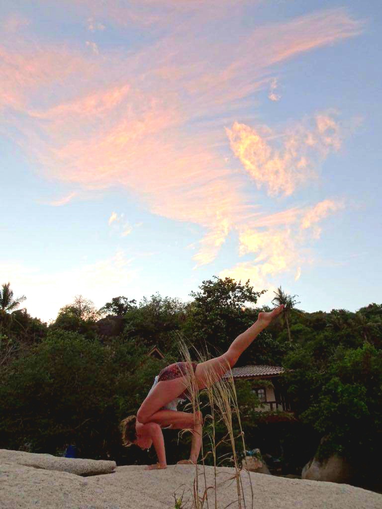 Mountain pose or Tadasana is great if your mind is full. Sometimes I don’t want to sit down, so you can stand with your feet a little distance apart. Keep your hands down with palms facing the outside of your thighs or, if you want to feel more energised, turn the palms outwards. Grace x